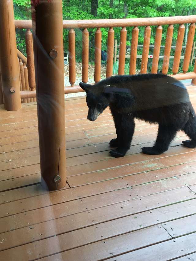 ▼3月11日兩人從睡夢中緩緩醒來,驚見度假木屋門廊前有3隻小熊走來走去,他們一開始還有些害怕。