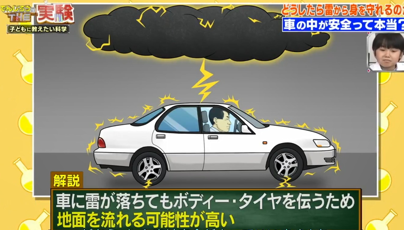 ▼另外我們在開車時,也不用害怕被雷擊擊中,因為車身和輪胎會將電流傳導至地面,對人類不會造成影響!