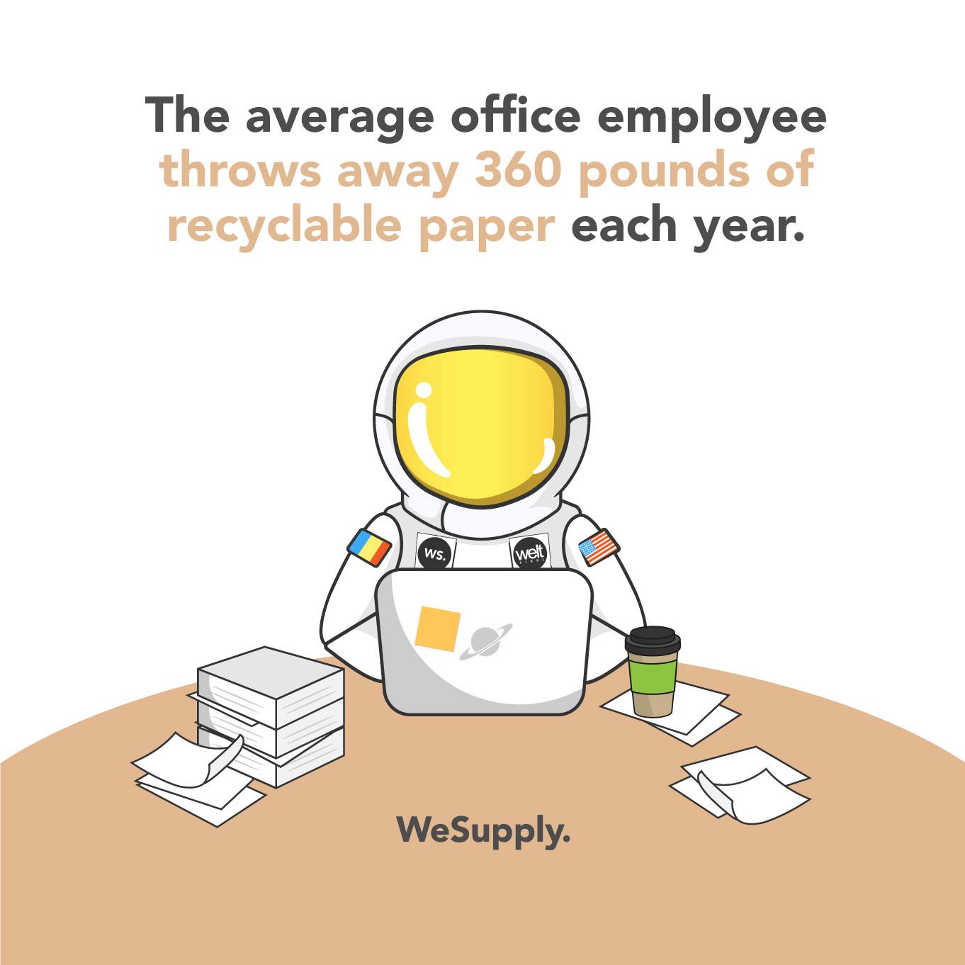▼17.上班族平均每年丟掉約360磅(163公斤)可回收的紙張。