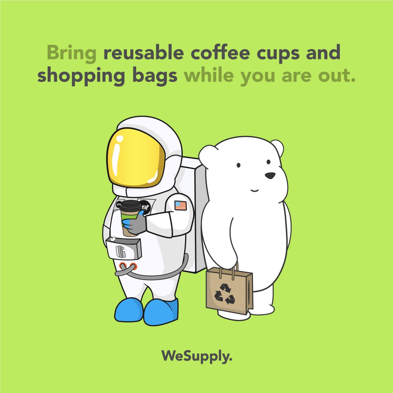 ▼16.外出記得隨身攜帶環保杯與購物袋。