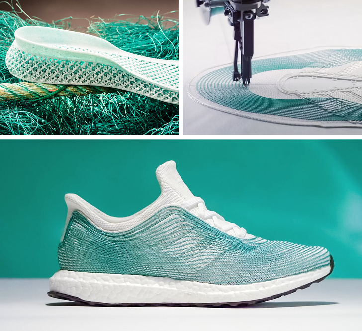 ▼用海洋中廢棄漁網做成的球鞋。