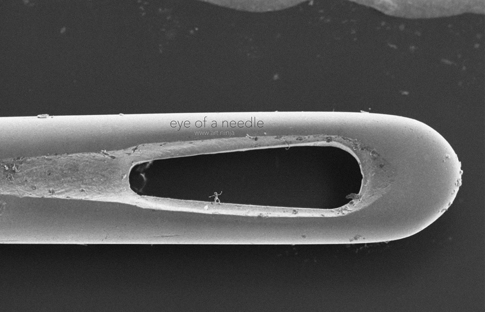 ▼針眼內的納米雕塑。