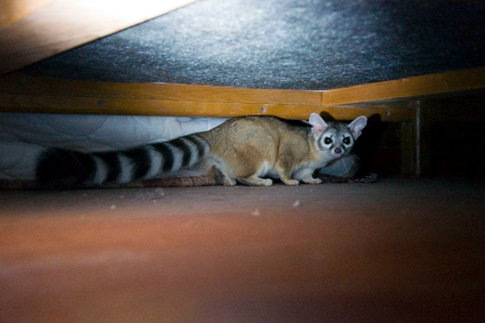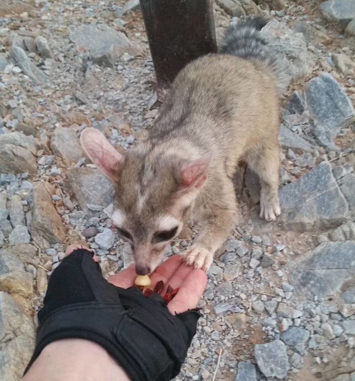 ▼在某些地區,蓬尾浣熊會出沒在礦坑附近,並且以礦坑中的老鼠等嚙齒類動物為食,因此也被稱為「礦工貓(miner cat)」;有些地區則習慣稱牠們為「麝香貓(civet cat)」,因為當牠們受驚時,會像麝香貓一樣從肛門腺排出臭氣,以嚇阻敵人。