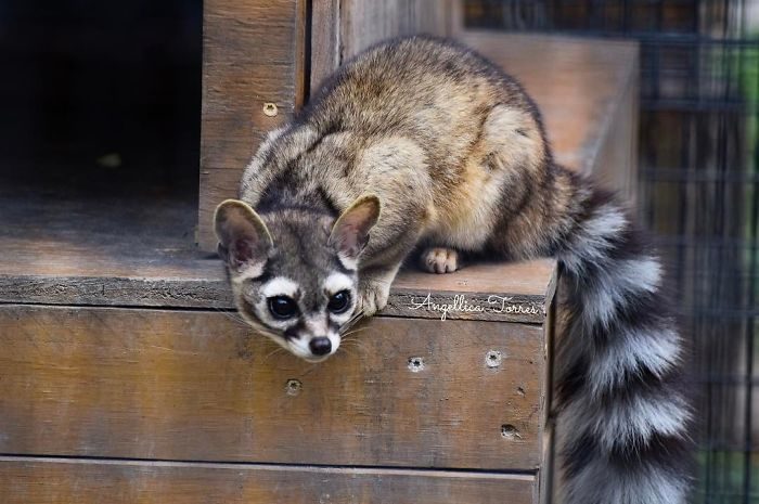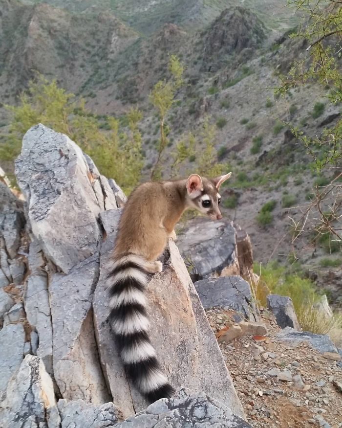 ▼「蓬尾浣熊」,英文中稱牠們為「環尾貓(Ring-tailed cat)」因為長得像貓咪、且跟貓咪一樣會「用爪爪洗臉」而得名。