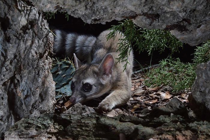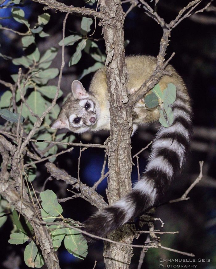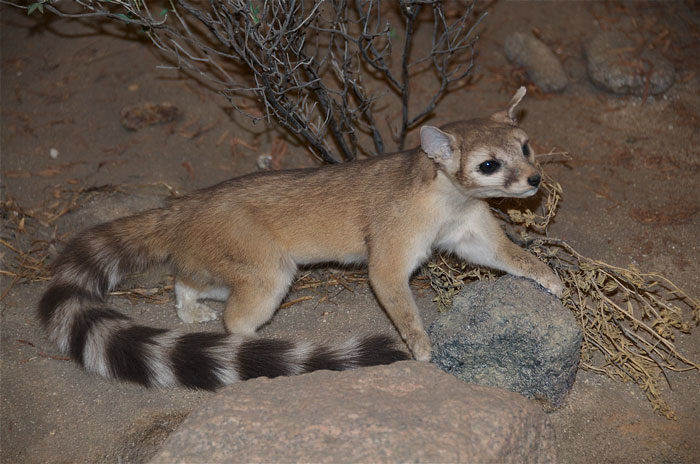 ▼蓬尾浣熊棲息在美國西部及西南部,雖然在當地不算稀少,但因為生性害羞、十分有警覺性,再加上牠們是夜行性動物,因此平常不容易見到。
