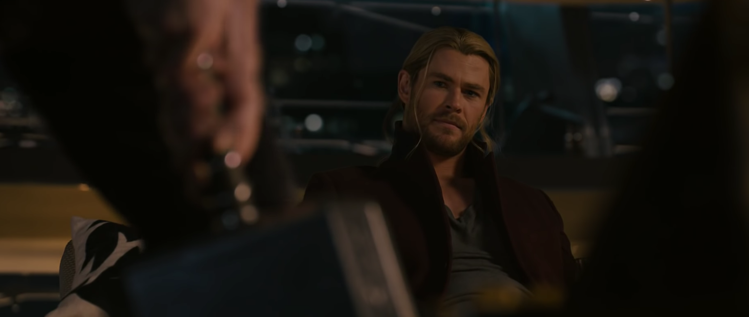 ▼《復仇者聯盟2:奧創紀元》的這一幕很經典,英雄們輪流嘗試舉起雷神之鎚。