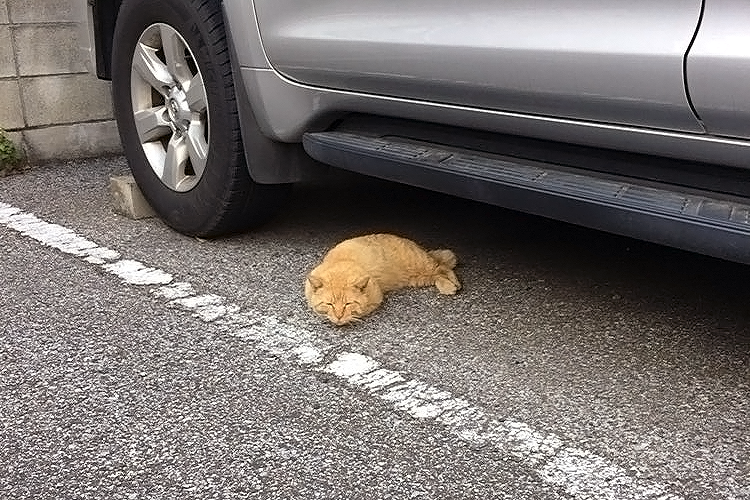 ▼照片中一隻橘貓在車底安逸得睡覺,腿部蜷縮著像極了蝦尾,加上一身橘色就像是剛出油鍋的炸蝦,超可愛的畫面很快在網路上爆紅。