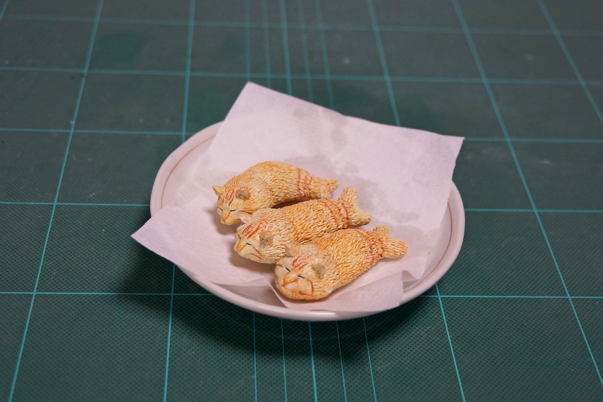 ▼めーちっさい在推特上寫道「橘貓有時候會變成炸蝦,因為很可愛就做了這個」。照片中他的模型作品將橘貓完美神還原!