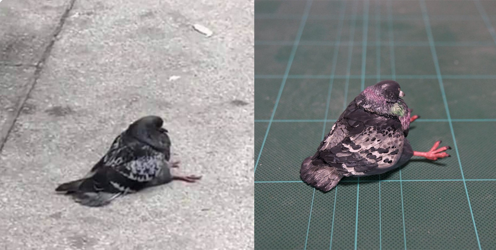 ▼一屁股坐地上的疲憊鴿子。