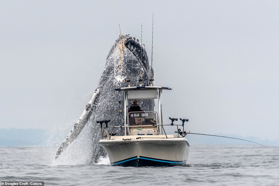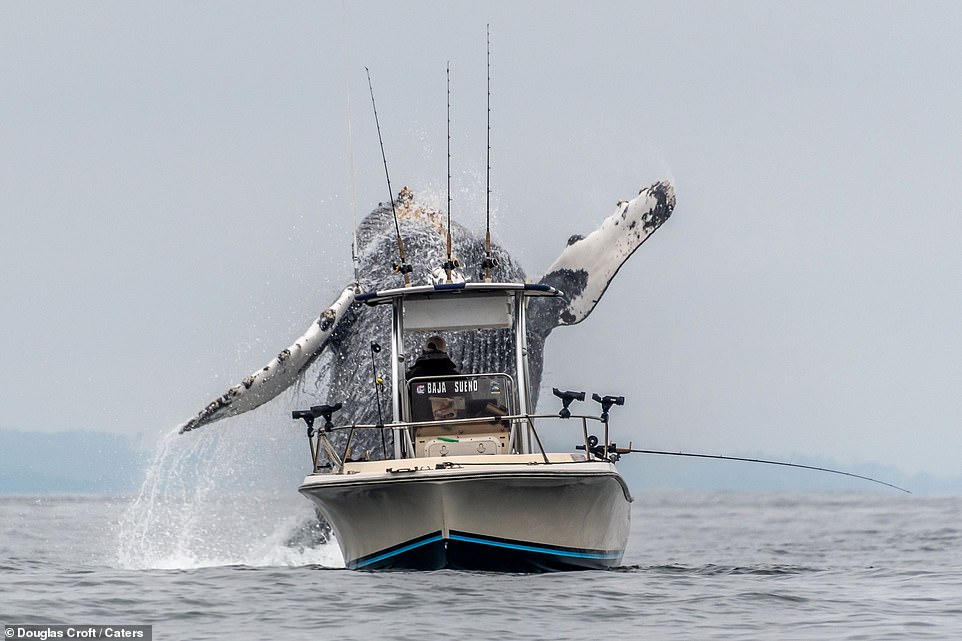 ▼當時60歲的漁夫道格拉斯(Douglas Croft)開著名為 Baja Sueno 的漁船經過這裡,突然一隻超巨型的座頭鯨躍出了水面,這難得的一幕讓老漁夫也感動不已。