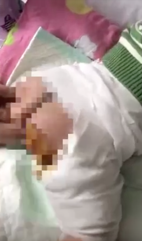 ▼外婆聽到男童大哭後,馬上就把他抱起來。沒想到竟發現男童的屁股已經被燙掉一層皮!