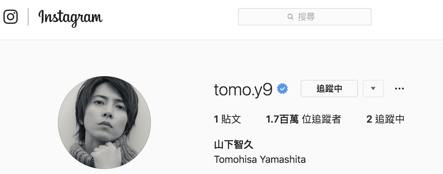 ▼山下智久以「tomo.y9」的帳號註冊IG後,馬上湧入大量粉絲追蹤。也是傑尼斯正式經營官方IG的首例。