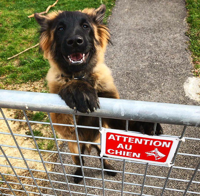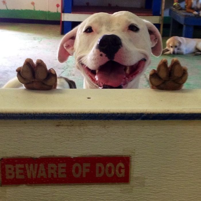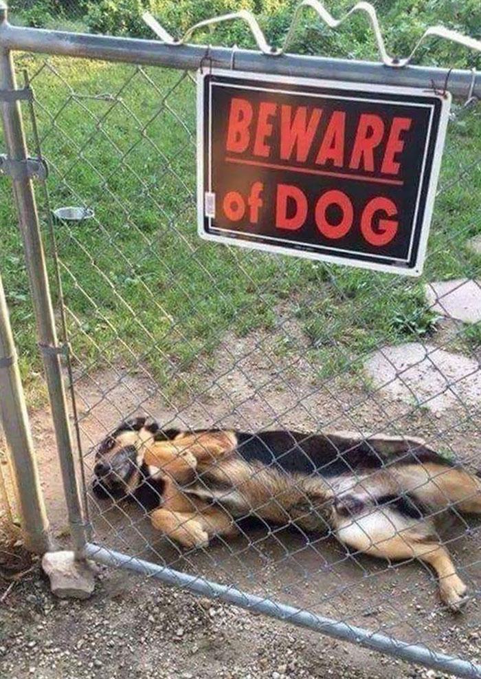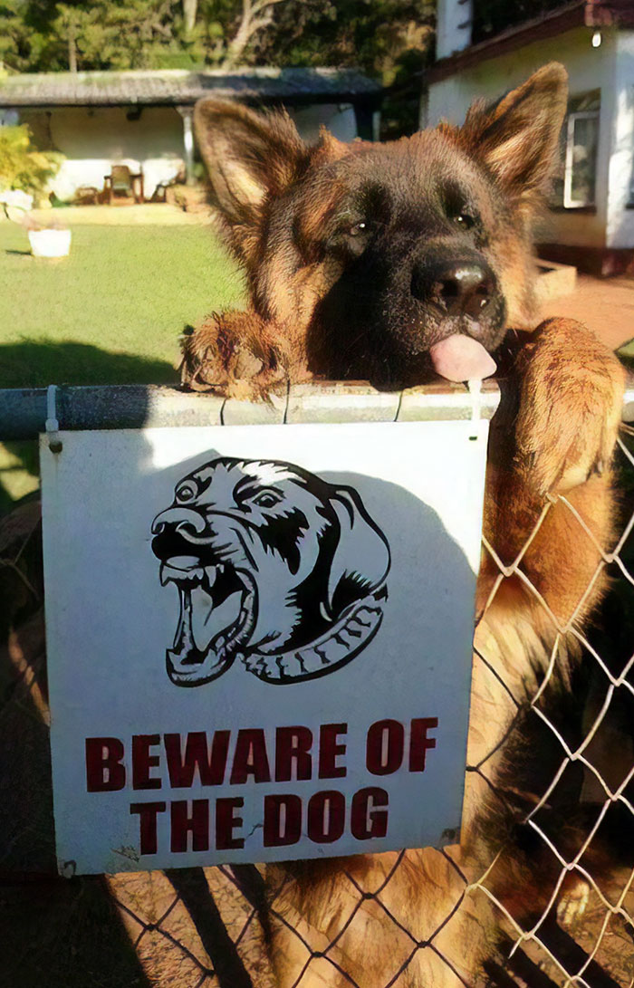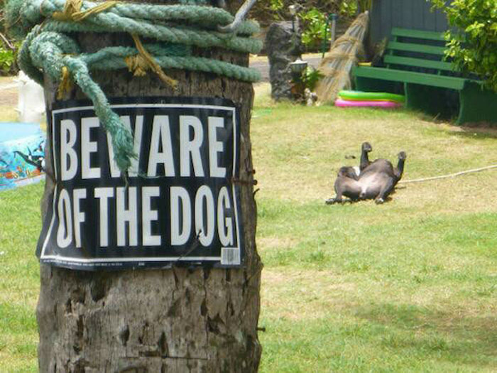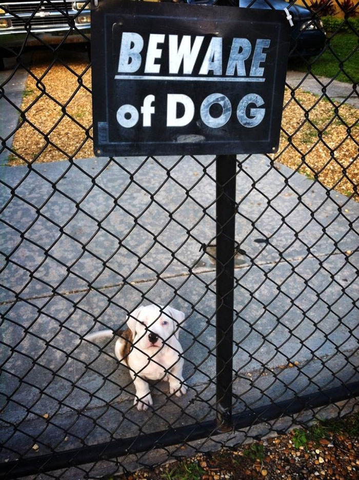 這些萌犬真的超可愛的啦~告示牌明明寫著「小心惡犬」,結果看到的實物卻根本不是那回事啊~萌犬一臉憨的模樣根本就是希望大家進去,然後一起玩樂吧?