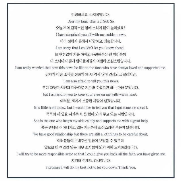 ▼蘇志燮在給粉絲的公開信中說,趙銀政在背後給了他很大的支持。他會牢記演員的責任,演好每一場戲,希望粉絲能夠繼續支持他。