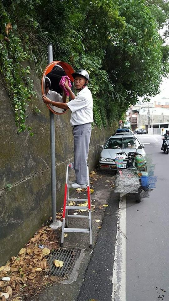 ▼其實這位阿伯不是唯一一位默默付出的善心人,過去也有一名76歲的阿伯「張秀雄」,自從2010年目睹了一場車禍、發現車禍現場有一面骯髒的照路鏡後,就全台灣走透透,為各縣市的用路人擦亮照路鏡。這位張秀雄阿伯也被譽為「反光鏡菩薩」,更於2016年獲交通部頒發「金路獎」特別貢獻,表揚他的善舉。