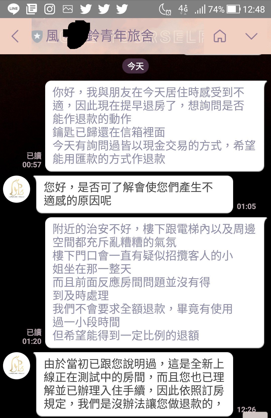 ▼之後跟負責人對質,對方居然以各種理由拒絕退錢,只表示下次可以提供免費住宿。最後她以廣告不實、網路上看到的設施跟地址都不同,入住的根本不是「本館」為由,才終於退到一晚的住宿費。