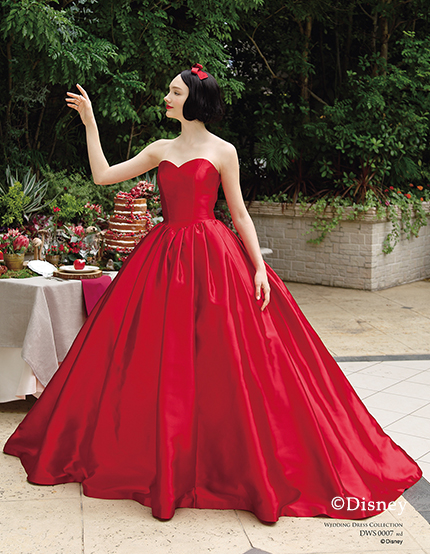 ▼迪士尼最經典的公主「白雪公主」絕對是所有女孩夢想中的完美大姐姐,但這次的白雪婚紗一別公主柔弱的一面,整片鮮紅色禮服搭配俐落黑短髮,反而有一種帥氣時尚的強勢感!