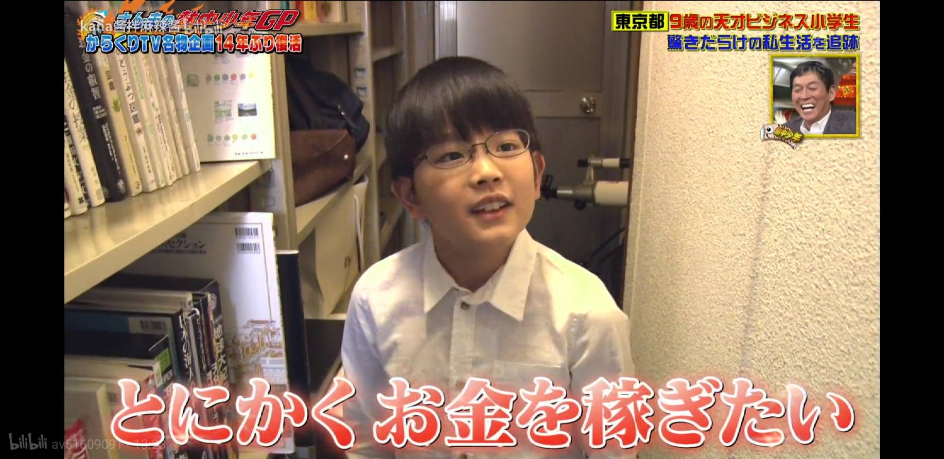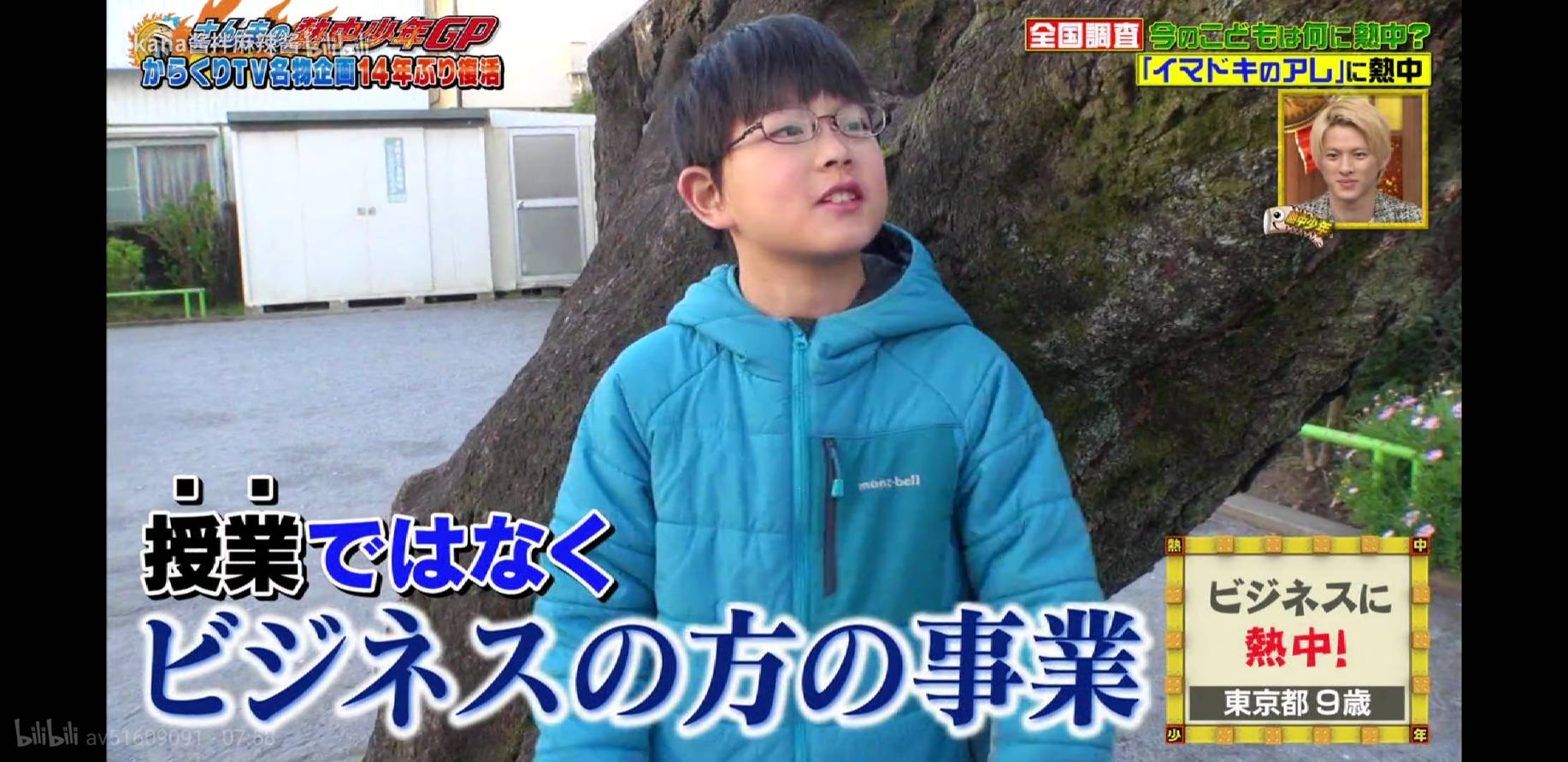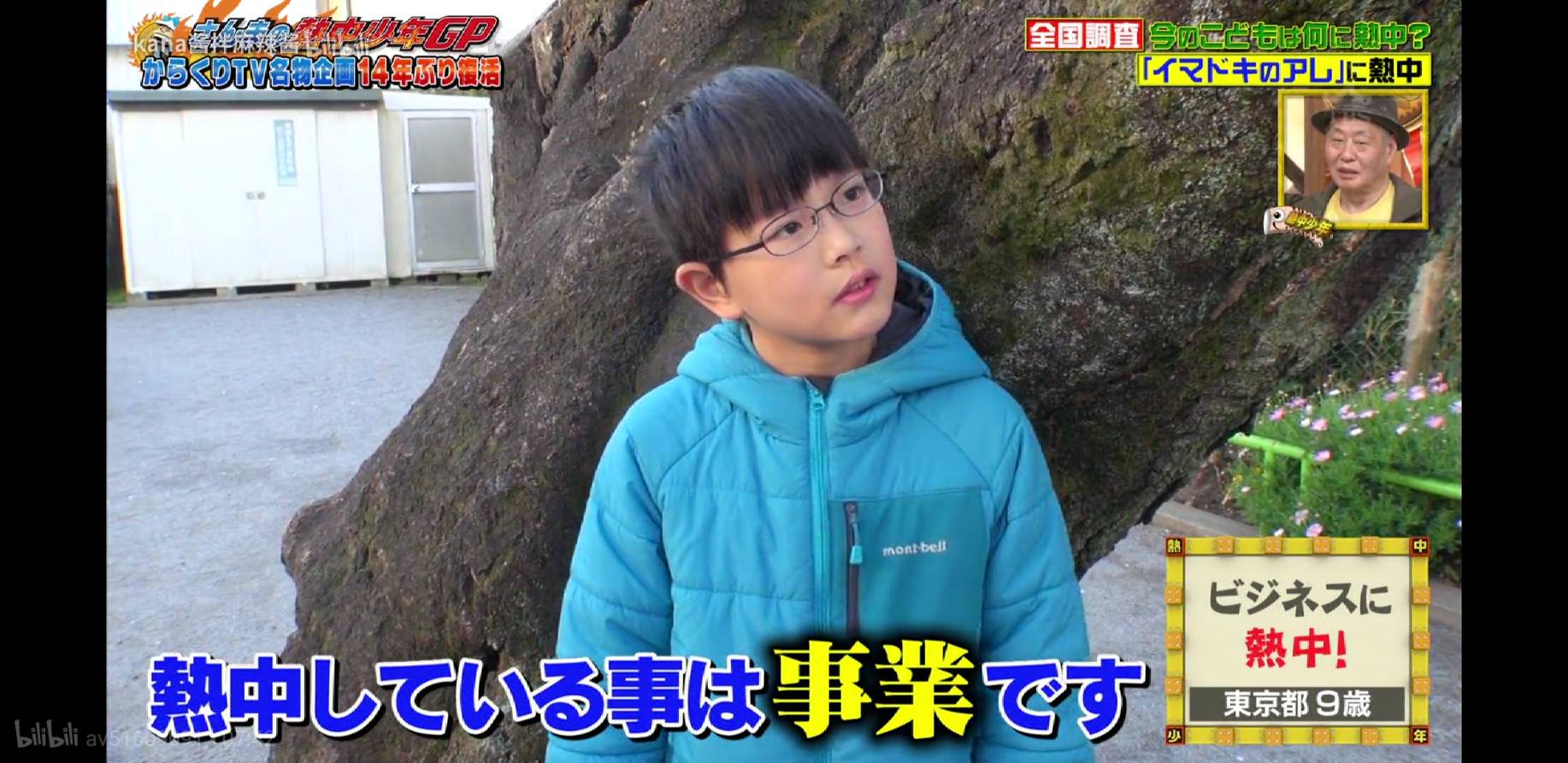 ▼日本節目《明石家さんまの熱中少年》訪問中,採訪了各地區少年們現在對什麼東西感興趣,當採訪到這名東京的9歲小朋友時,他說他正對「事業」很熱衷。