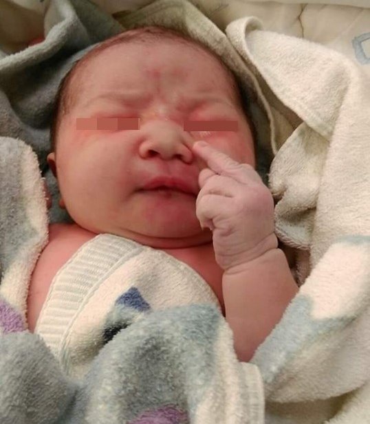 新生女兒很派!初見面就「手勢嗆老爸」 網友狂笑:霸氣滿滿