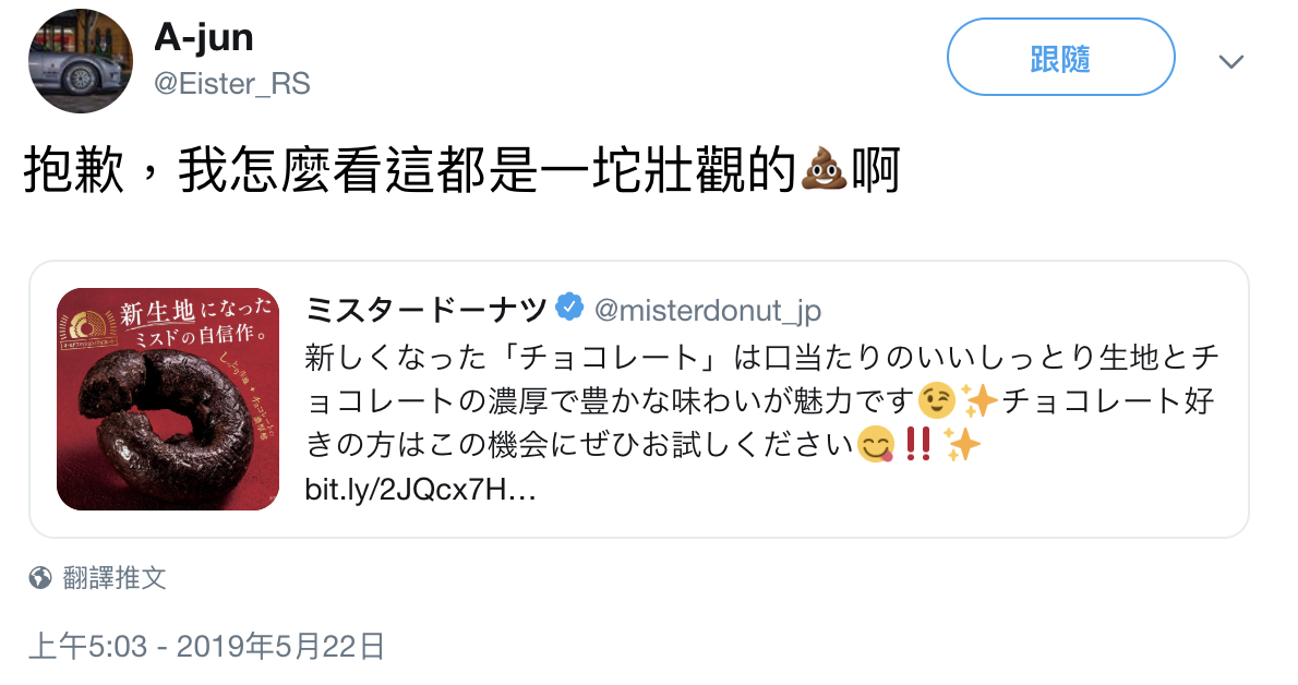 2019年05月23日日本的Mister Donut最近上了兩款新產品,結果讓推特網友議論紛紛;但議論的點竟然是因為…其中一款長得實在太噁啦!