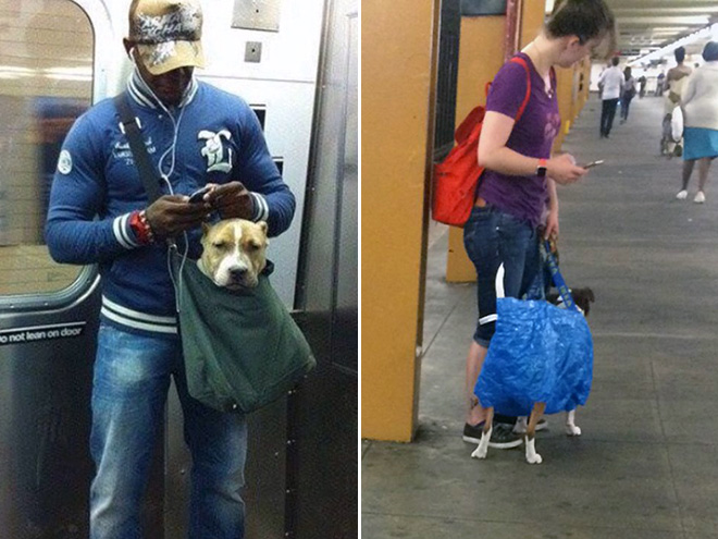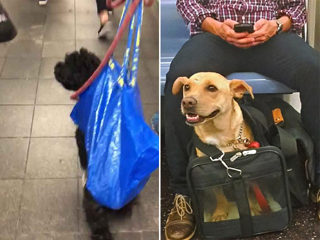 為了避免被罰款,這些主人都用了各種令人欽佩的創意,將狗狗放在各種的「容器」當中出行,大家如果在地鐵上看到這樣的景象,是不是也覺得非常可愛呢?