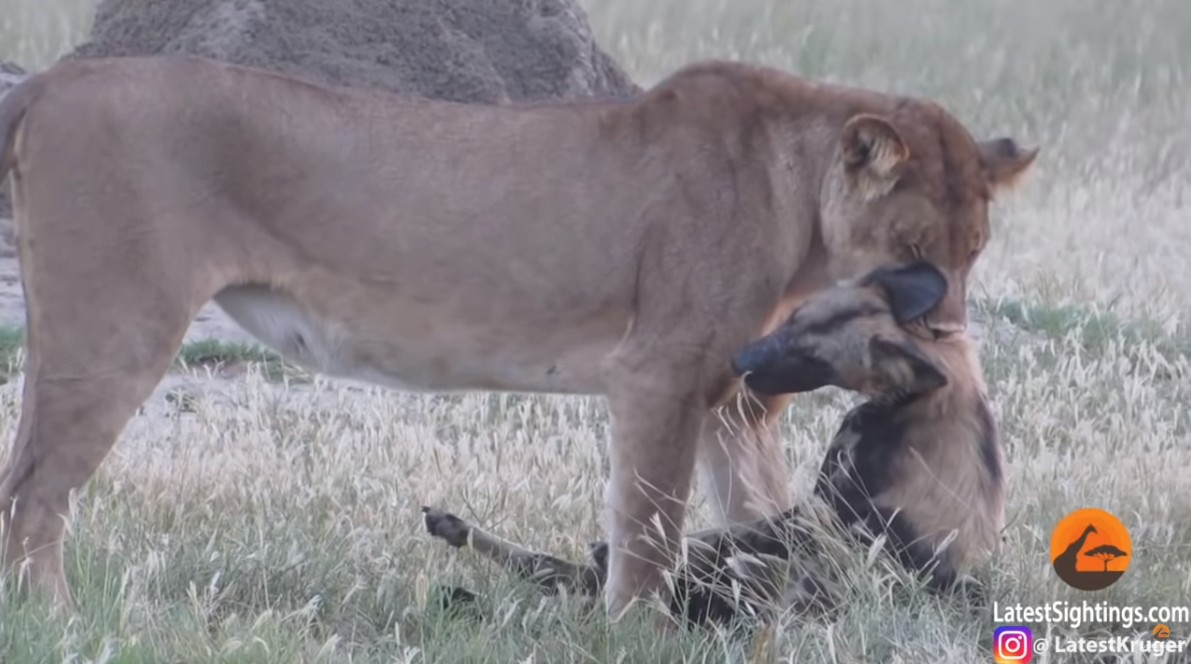 2019年05月29日日前在非洲南部辛巴威的萬基國家公園(Hwange National Park)中發生了一件令人大開眼界的大自然「鬥智」畫面,這隻非洲野犬在被母獅咬著時,竟然假裝不再掙扎,等到母獅鬆懈後瞬間逃命,讓剛好目睹這一切的遊客們都被嚇得目瞪口呆!