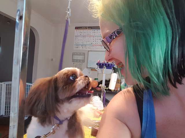 ▼過去的三年中,Muffin 都在華盛頓這家名為 Home Pet Grooming 的寵物美容院,讓專業的美容師 Lias Granade 剪毛,一人一狗也成為了很好的朋友。