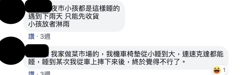 ▼照片引起網友共鳴,紛紛表示夜市小孩都是這樣、自己也是這麼睡大的。