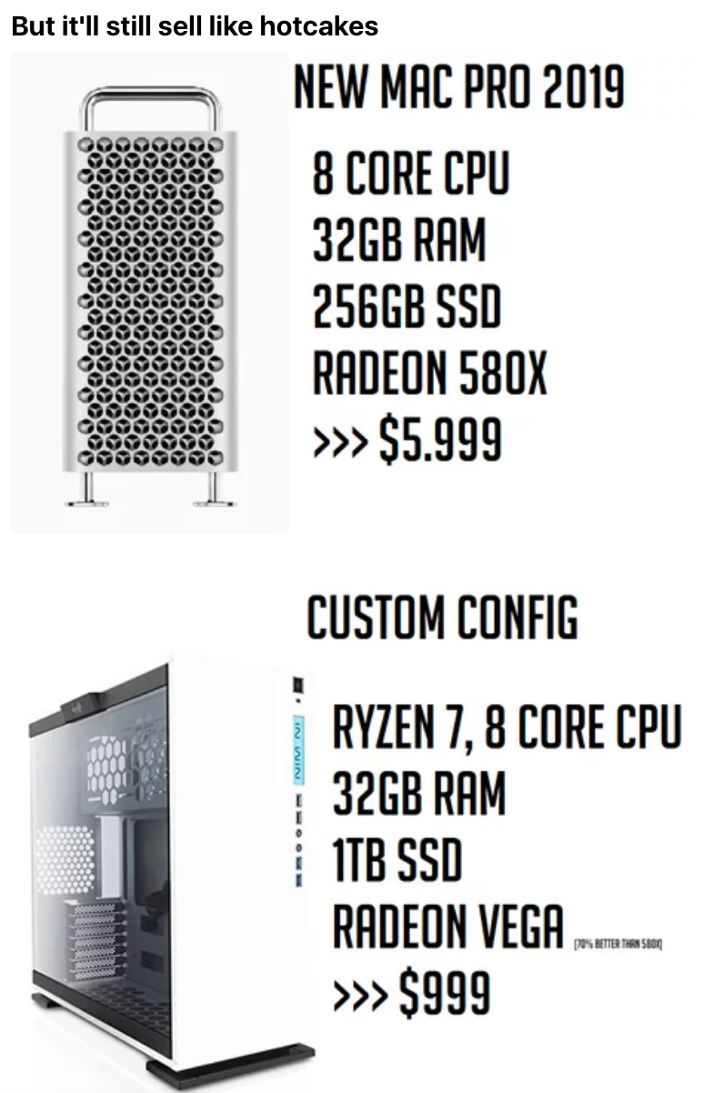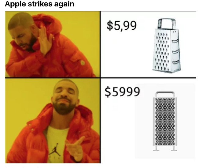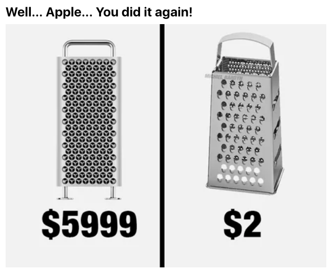 2019年06月05日蘋果產品的售價真的越來越狂!蘋果在WWDC開發者大會推出全新Mac Pro桌上型電腦和外置顯示器,但是售價卻讓外國媒體也咋舌,痛批搶錢不手軟、簡直荒謬至極!網友也忍不住自製梗圖讓大家笑一笑!