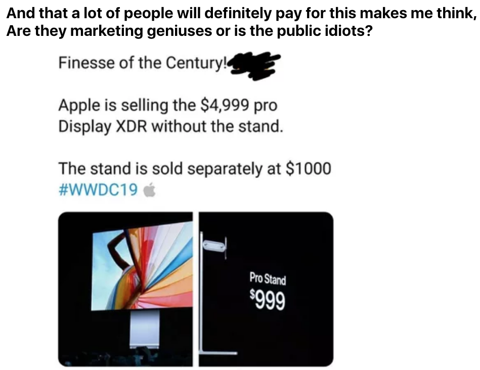 ▼世紀手段!蘋果賣沒有支架的顯示器要16萬元,想要支架得多付3萬元!