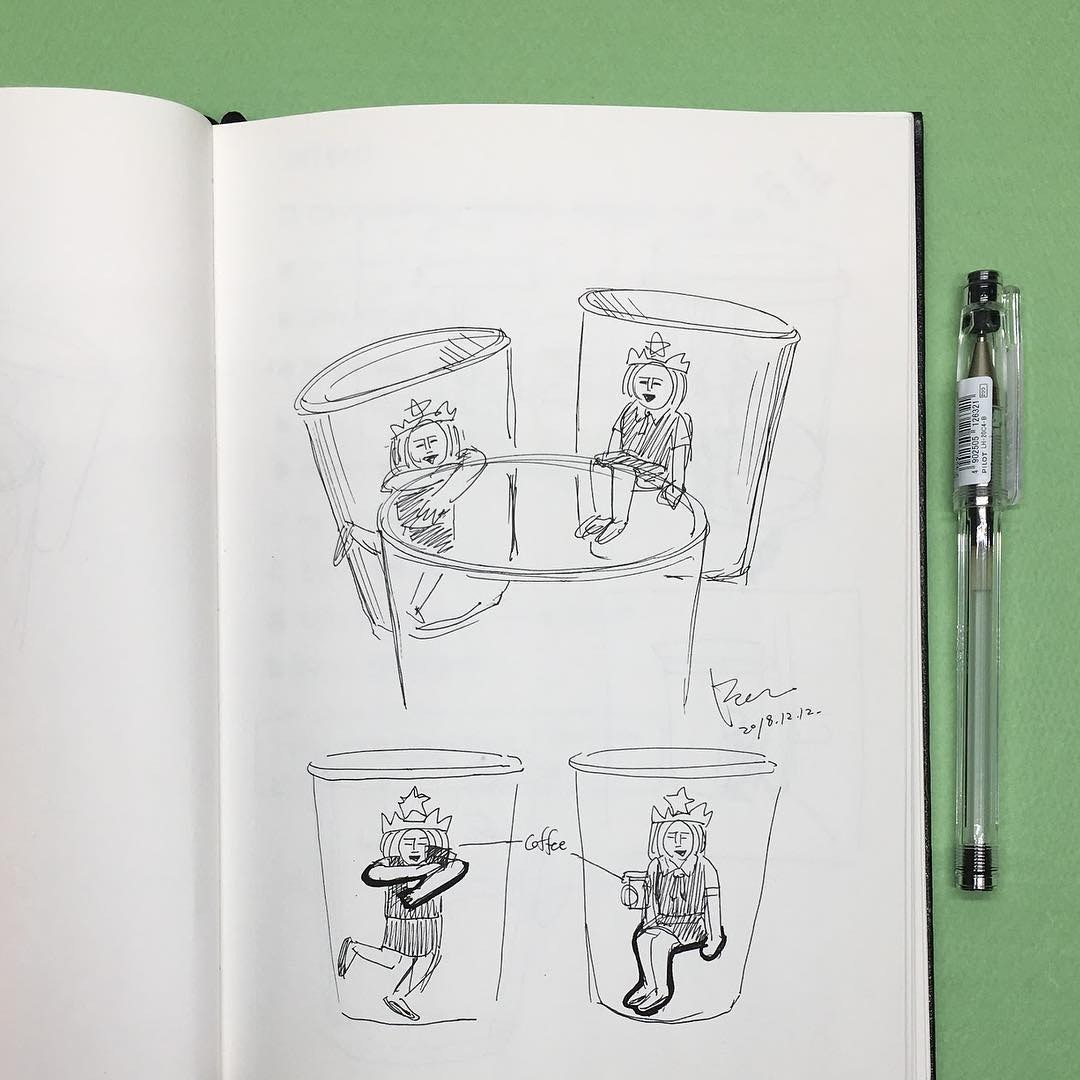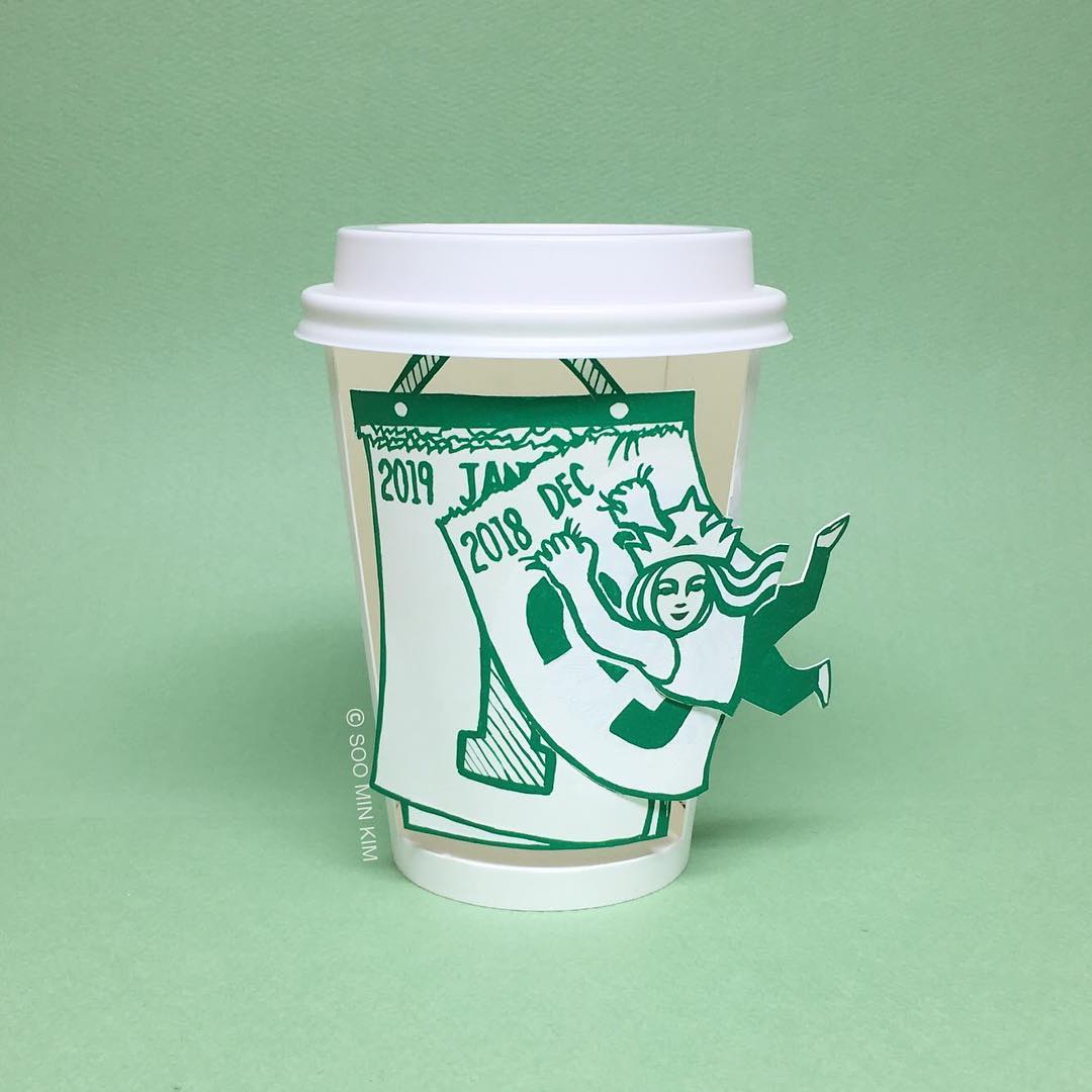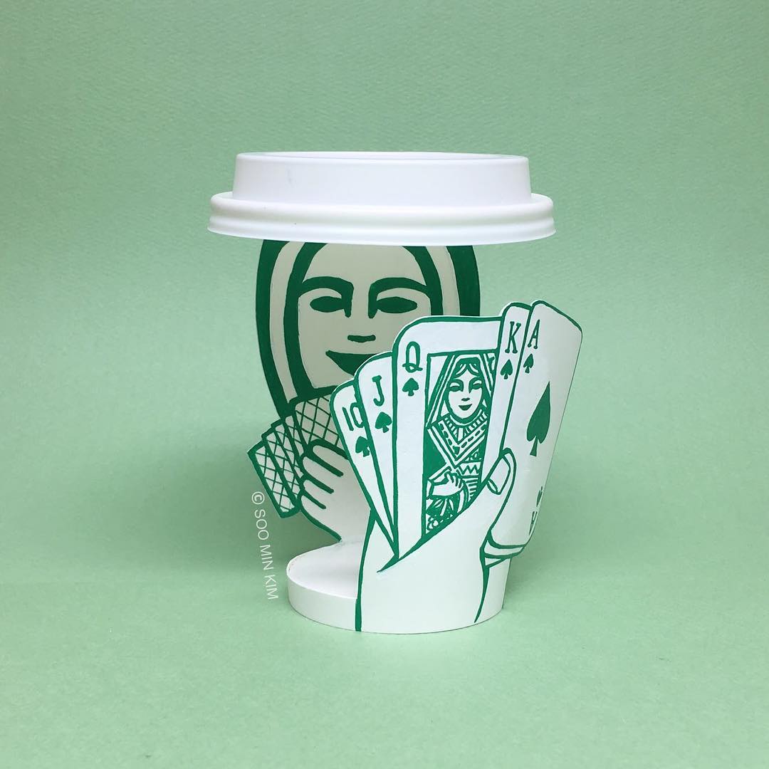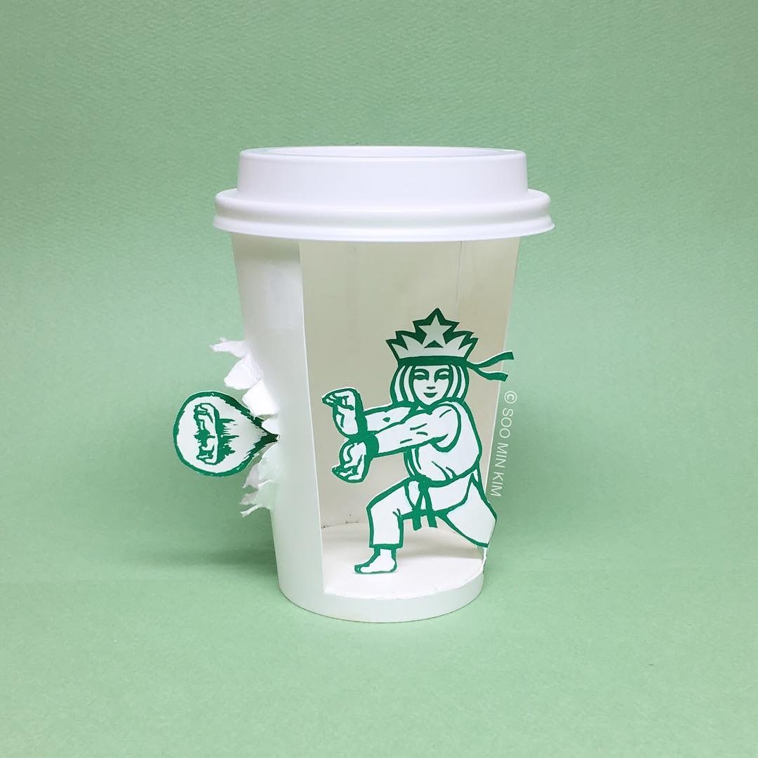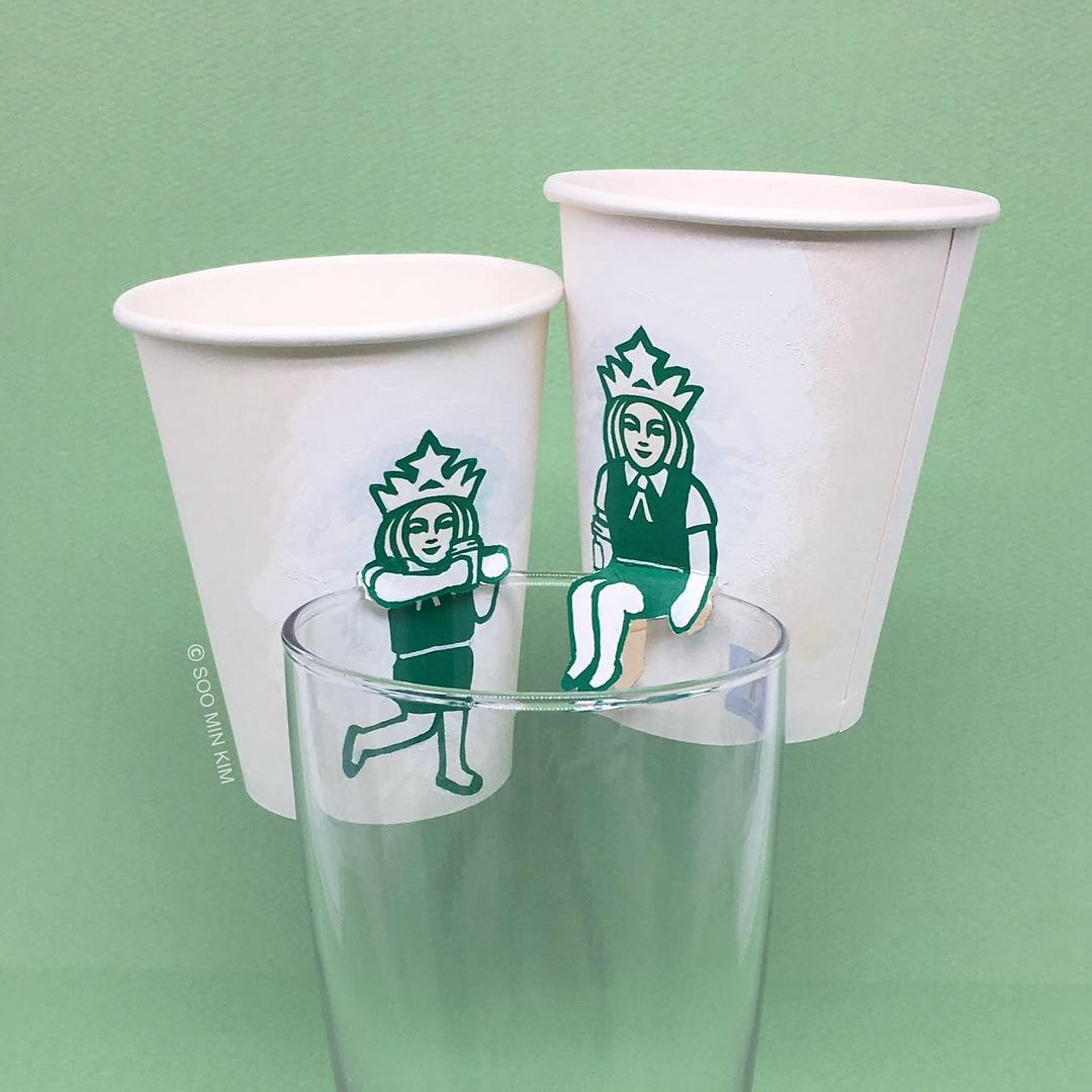 ▼韓國畫家Soo Min Kim會在星巴克的標誌上塗上一層白色顏料,接著使用綠色畫筆加工成不同模樣。變得生活化的美人魚,真的很有趣呢!