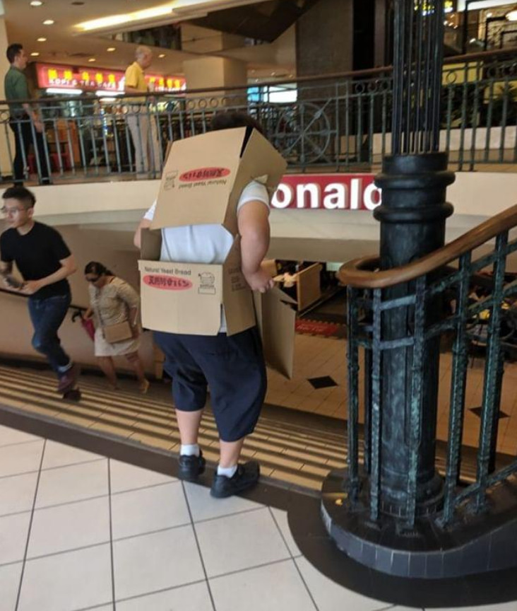 2019年06月07日為了進網咖打遊戲真的是拼了!新加玻一名網友在商場吃午餐的時候,目睹了一名剛放學的男學生「變身紙箱男」一路往網咖的方向走去!由於穿著學生制服是不被允許進入網咖,這名男學生竟然機智想到用紙箱遮蓋制服,表達了他強烈想要進入網咖打遊戲的慾望!