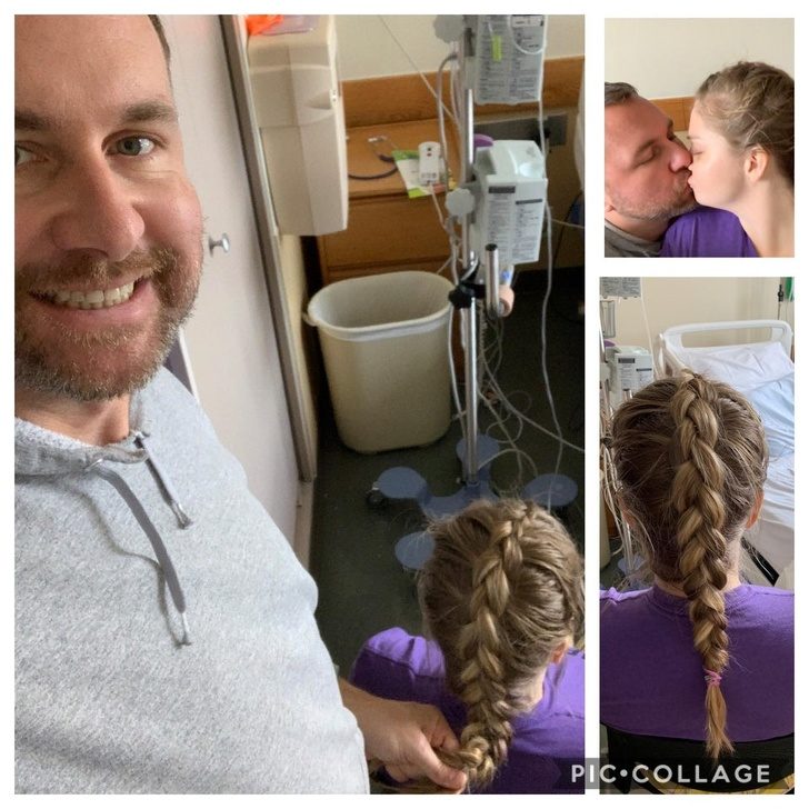 ▼2. 女友正在醫院努力接受治療,男友以行動支持,還幫她綁了很好看的編髮。