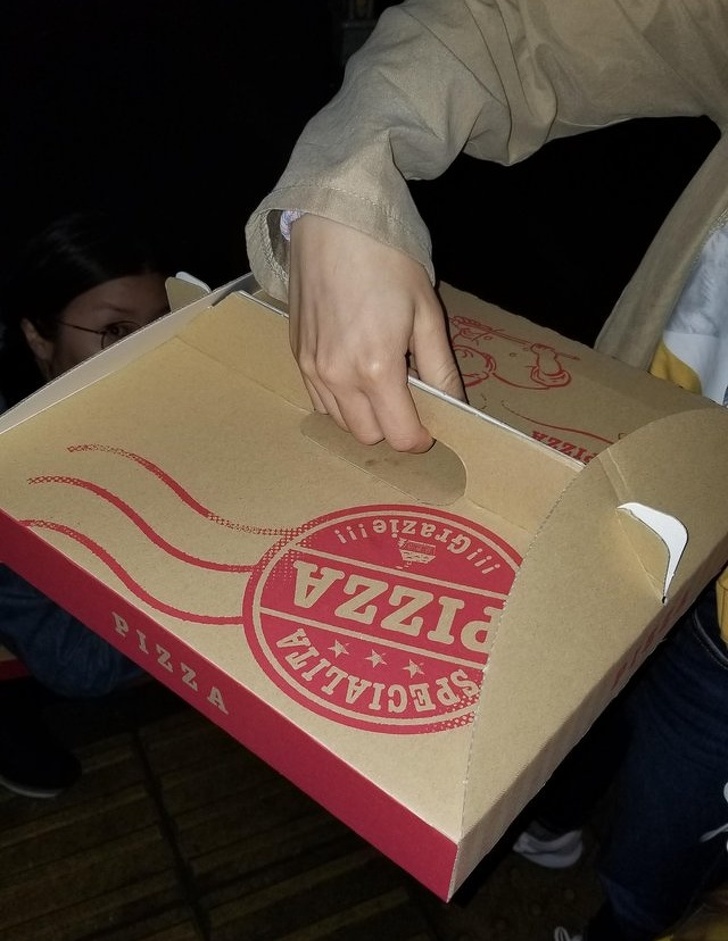 ▼10.披薩盒中間的把手,更方便和平穩的外帶披薩。