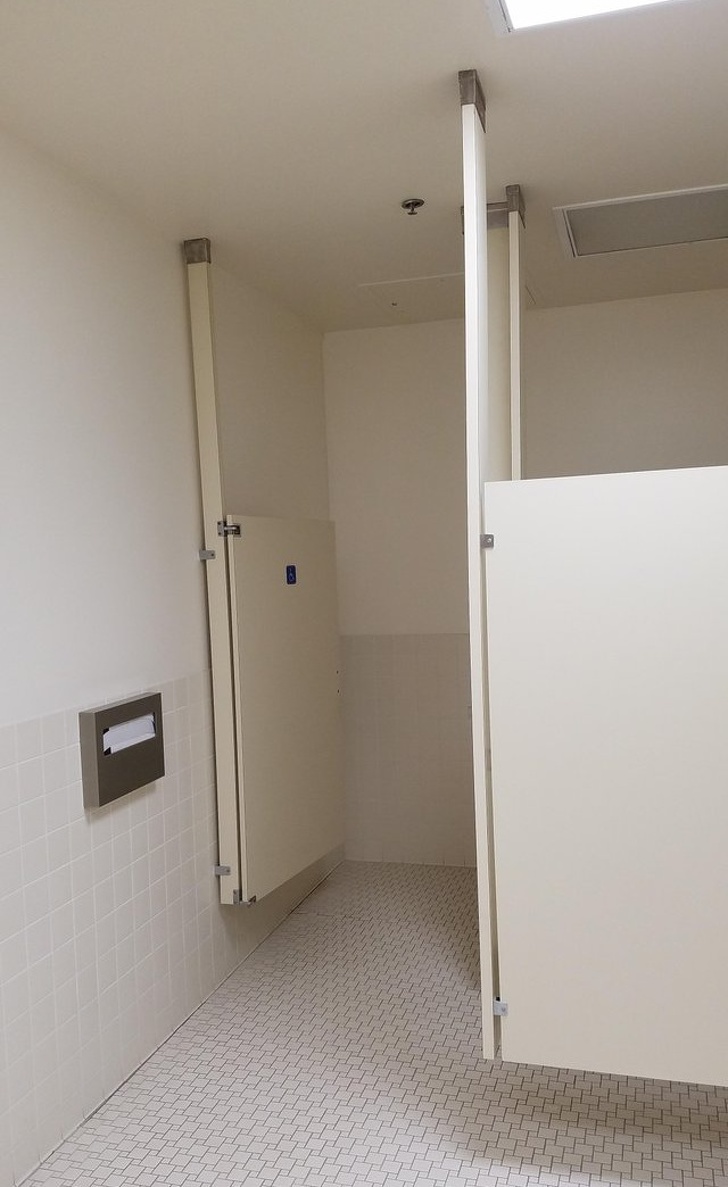 ▼6.浴室隔板懸掛在天花板上,這樣清理地板會變得輕鬆很多。