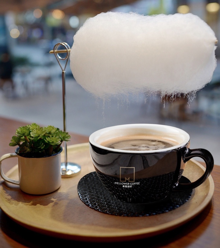 ▼1.上海的一間咖啡廳,會在咖啡上放置雲朵狀的棉花糖,隨著咖啡中熱氣的上升,棉花糖會融化滴落,增加咖啡中的糖分。