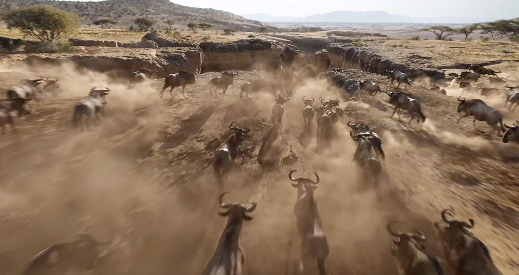 ▼真人電影釋出的預告片中有很多動畫電影裡的經典畫面,比如長老高舉小辛巴、非洲草原動物大遷徙等。