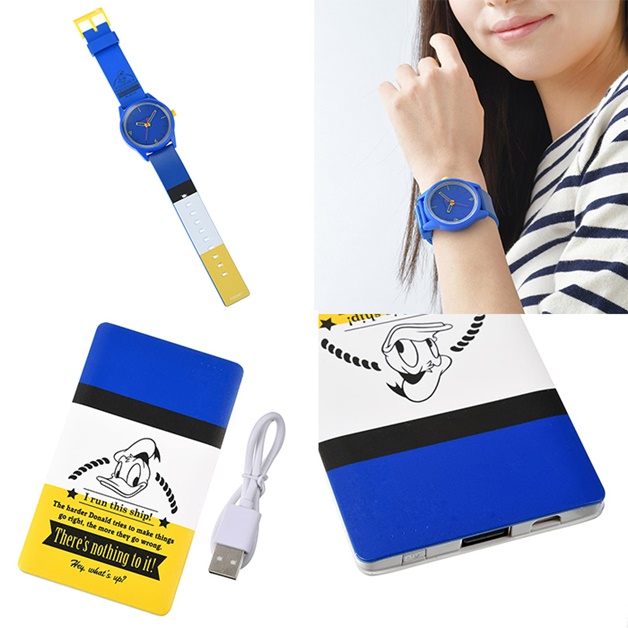 ▼Q&Q SmileSolar太陽能手錶和行動電源:CITIZEN 旗下的 Q&Q 太陽能手錶 SmileSolar 與唐老鴨的聯名款,在室內燈光與陽光下都能充電,充飽電後可使用3.5個月!另外這個厚度不到1公分的 4000mAh 行動電源,重量只有超輕的100公克,可以為手機充電約2次,輕便易攜是旅途的好幫手!