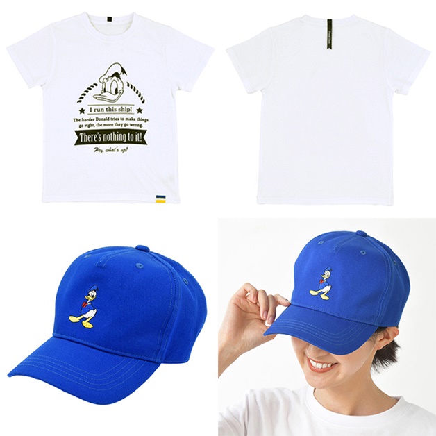 ▼Logo 短袖T恤和帽子:印有唐老鴨 Logo 的T恤,後領也有一條寫著唐老鴨名字的緞帶,讓看起來平凡無奇的短袖T多了一些有趣的元素。而唐老鴨 Logo 的藍色帽子,後方有釦環可以調整鬆緊度,非常適合各種穿著搭配。