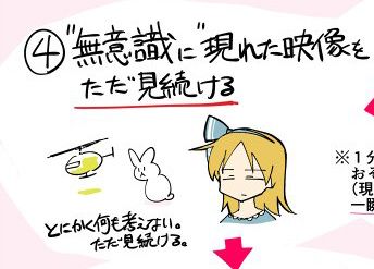 ▼不管腦袋中浮現什麼畫面,將精神集中在剛剛出現的東西,不要想其他的事。