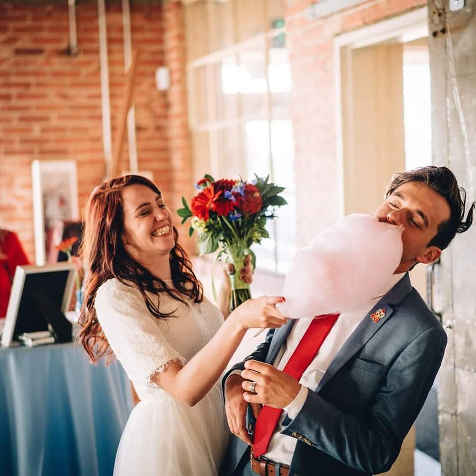 ▼婚禮結束後,就可以一起享用棉花糖了!