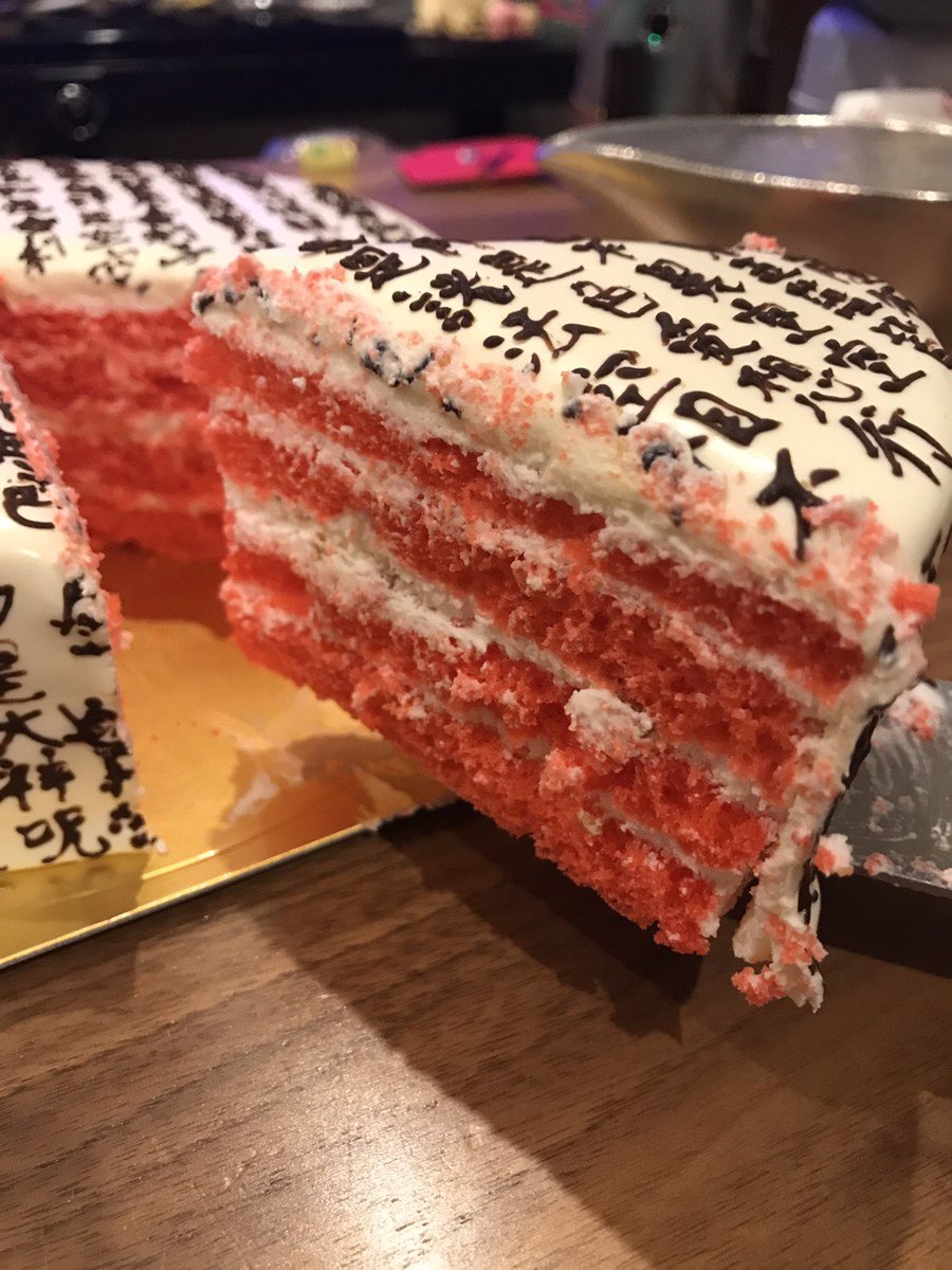▼切開來之後,內層的蛋糕體是紅色的,為整個蛋糕又增添了不少詭譎感。店主表示,這款蛋糕是友人為了慶祝女友生日,向他特別訂製的…這肯定會分手吧XD!