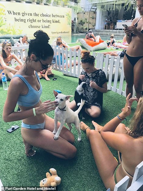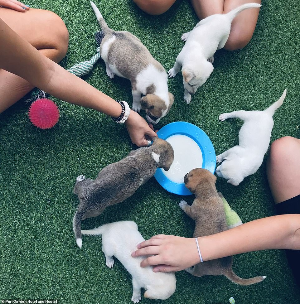▼飯店的旅客可以在泳池旁,與這些小狗狗們盡情玩耍、擁抱和拍照。
