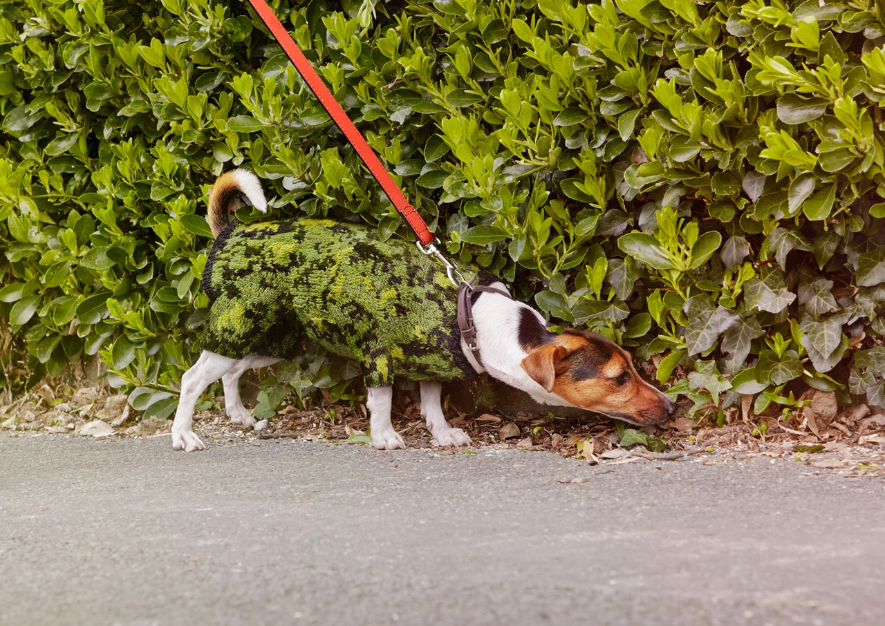 ▼這些「隱身照」是不是很有趣?美國攝影師Joseph Ford曾與藝術家Nina Dodd合作,拍攝一系列人景合一的奇妙照片。比如這隻狗狗,完美在灌木叢中隱身。
