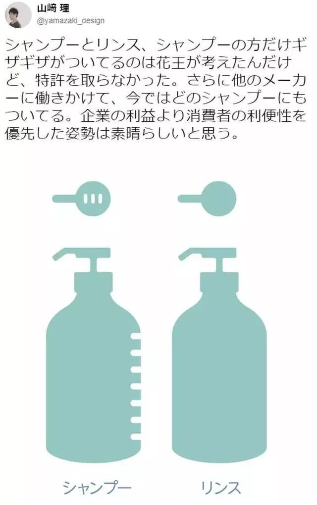 ▼網友們看到後,都覺得這種設計非常方便,也很貼心。還有專業的網友解釋說,日本其他的商品上也有類似的貼心設計,比如「洗髮精跟潤絲精,只有洗髮精瓶身上有凹凸不平的紋路;鋁罐開口處附近,只有酒類有點字」。