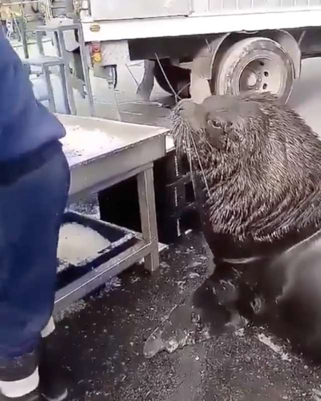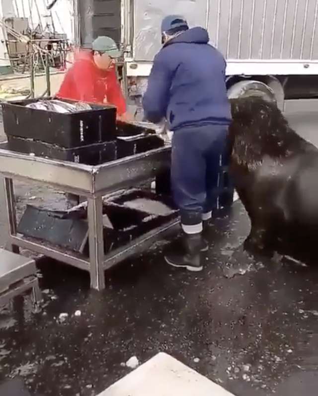 肚子餓餓...「超巨大海獅」秒變萌汪 上魚市乖等:想吃零食~