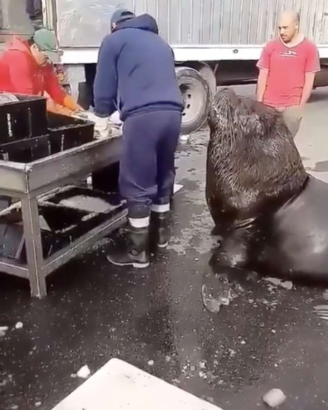 ▼從這段影片中可以看到,這隻南美洲海獅發現了海岸上的魚市場,於是牠決定來這裡「一探究竟」!