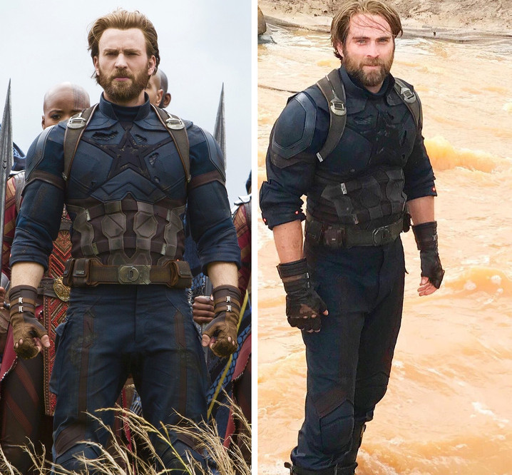 ▼2. 《復仇者聯盟 3》的克里斯伊凡 (Chris Evans) 與替身Daniel Hargrave。