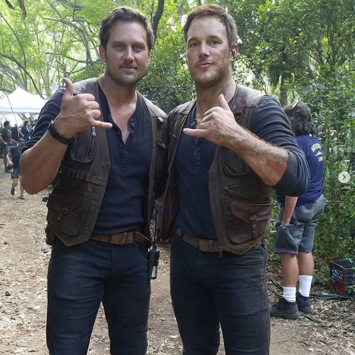 ▼4. 《侏羅紀世界》的克里斯普瑞特 (Chris Pratt) 與替身Tony McFarr。
