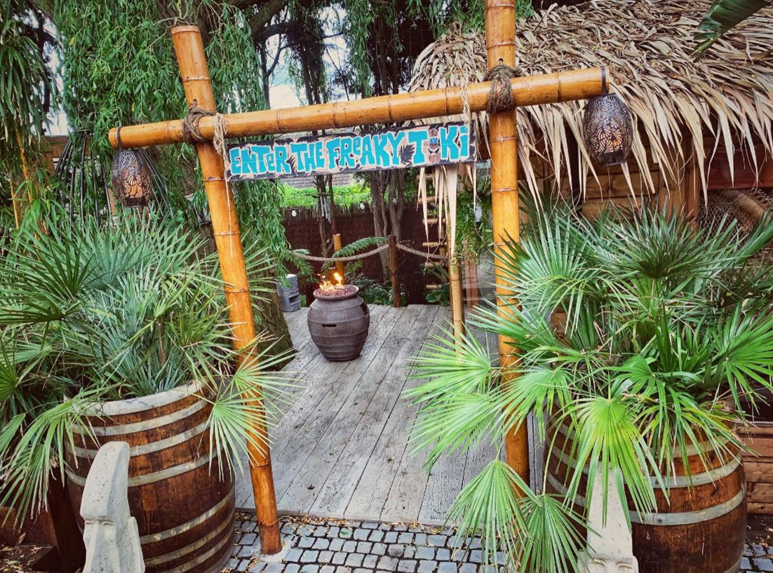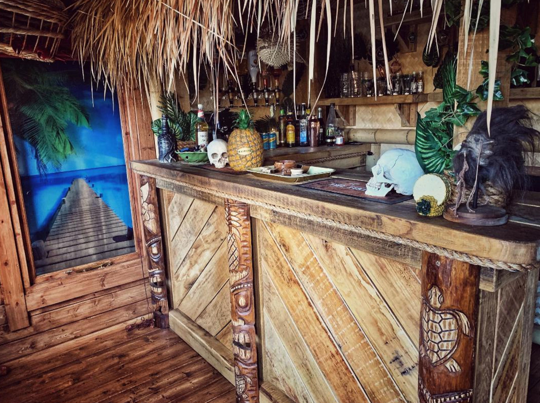 ▼橋的盡頭是一座小屋,Chris叫它「Freaky Tiki」。這座小屋內有吧檯、凳子,還有他親手打造的小飾品。改造花園共花了35,000英鎊(約台幣1,380,775元),這是一筆不小的開銷,但Chris和Sharon都覺得很值得。
